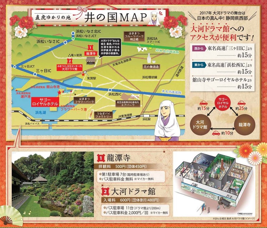 大河ドラマの主人公「井伊直虎」を五感で楽しみ、浜名湖湖畔で思い出に残る「ひと時」をお過ごしいただければ幸いです。