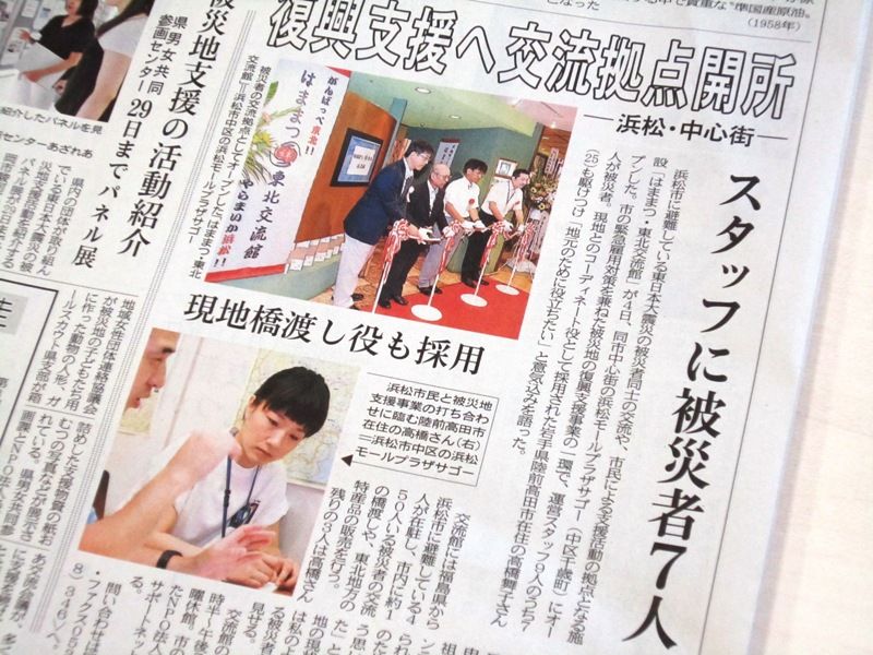 - 復興支援へ浜松に交流拠点開所 スタッフに被災者7人採用(静岡新聞 2011/07/05)