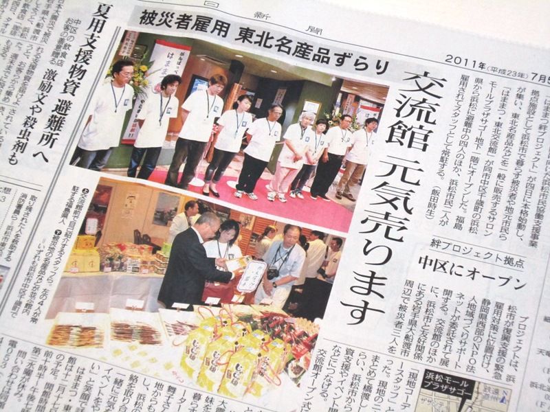- 東北交流館で元気売ります 浜松に絆プロジェクトが拠点施設をオープン 被災者雇用、東北名産品ずらり(中日新聞 2011/07/05)
