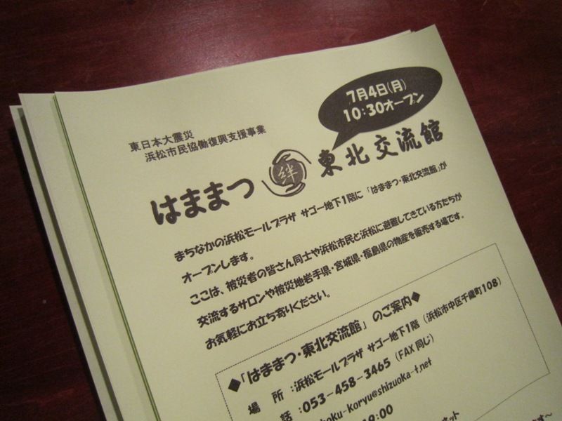 2011年7月4日(月)10:30に「はままつ・東北交流館」が浜松モールプラザサゴーサゴーの地階にオープンしました。