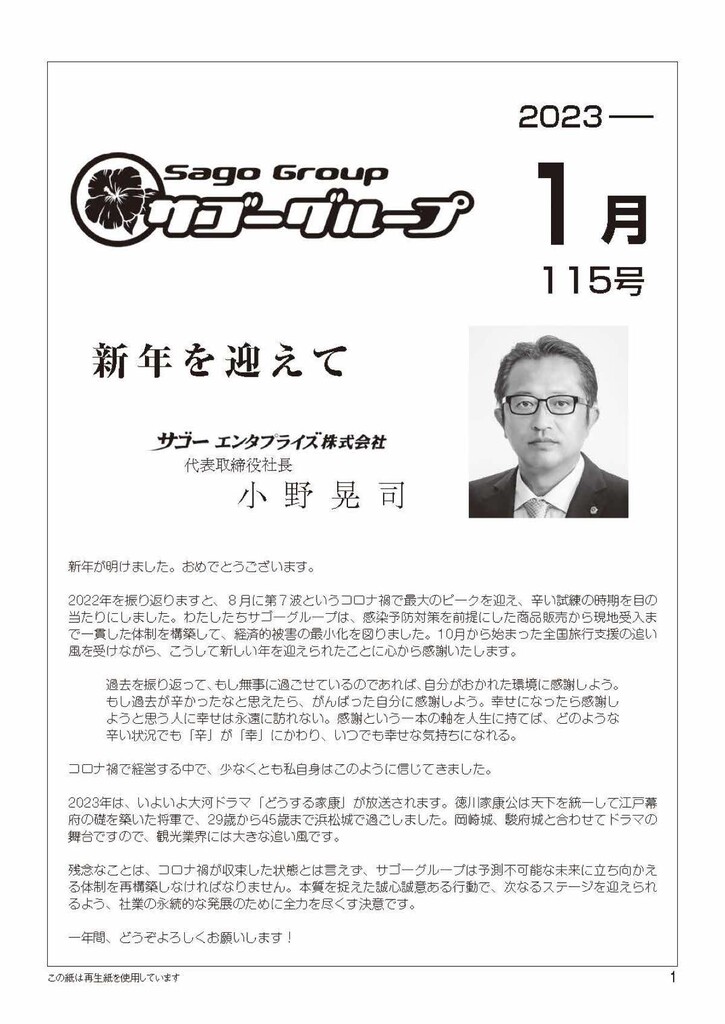 新年を迎えてサゴーエンタプライズ株式会社代表取締役 小野晃司